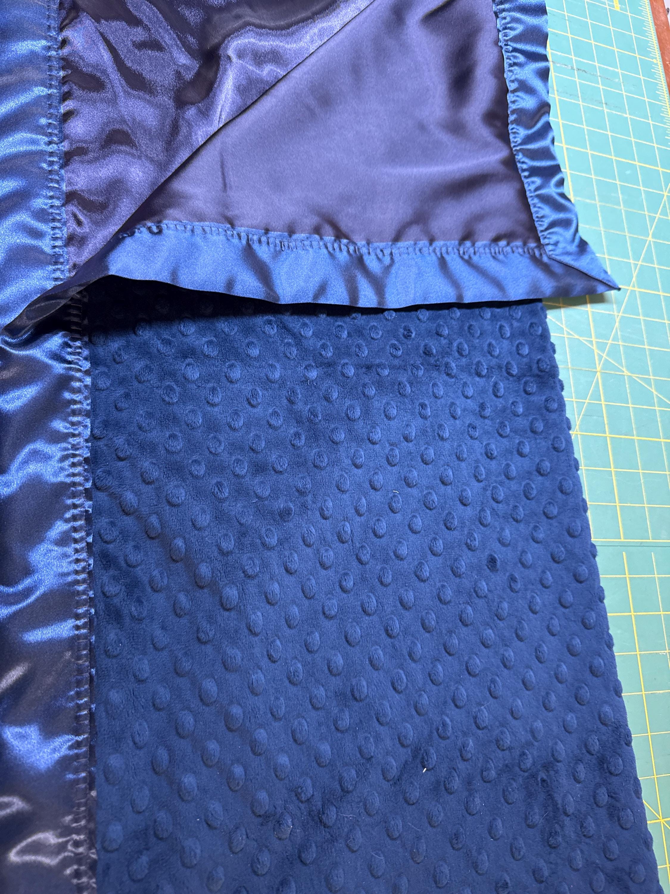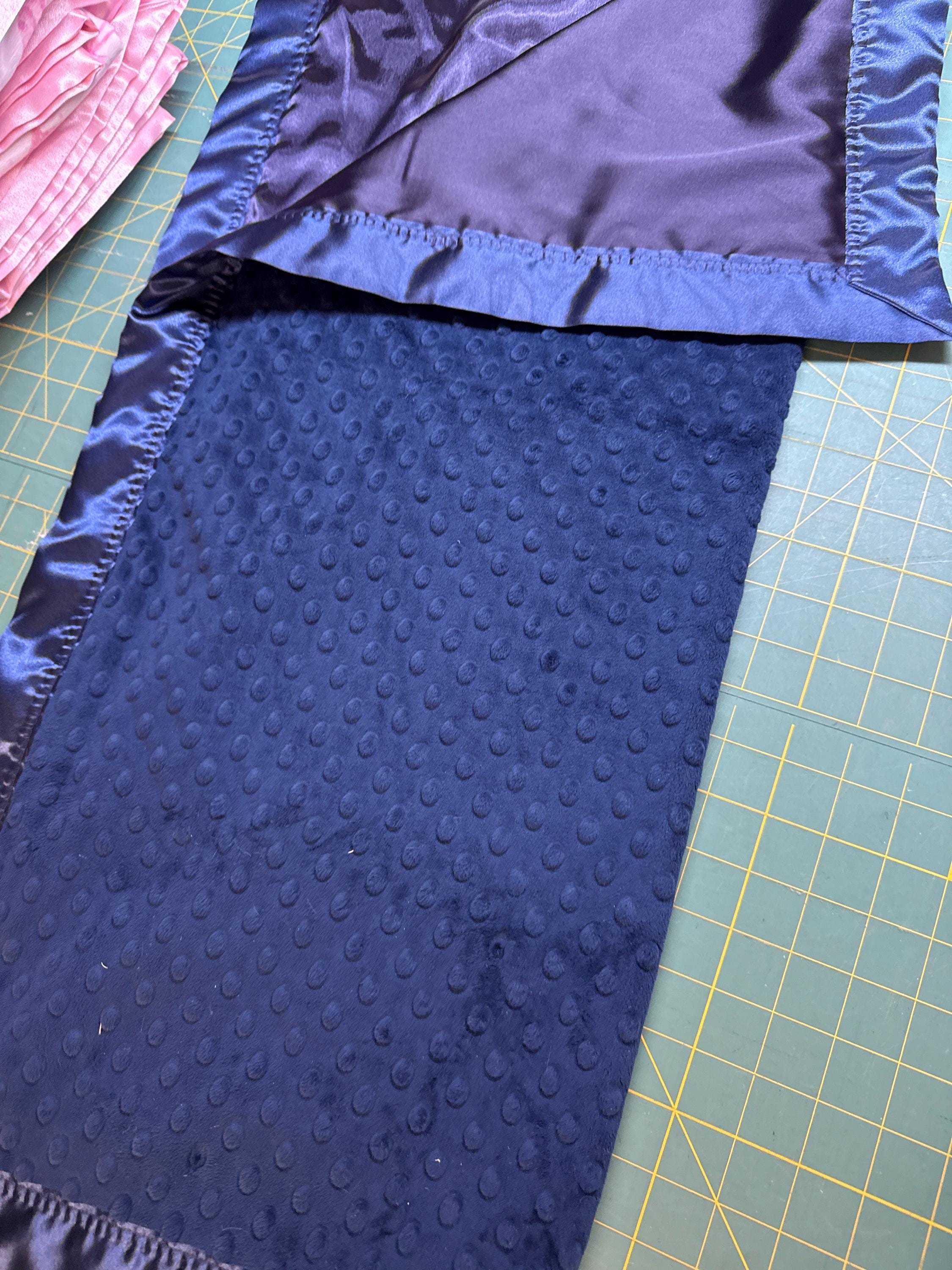 This solid navy blue minky dot blanket with navy satin backing and binding will make a solid statement to any theme that needs navy blue as an accent. FREE embroidery is always appreciated by moms and dads.