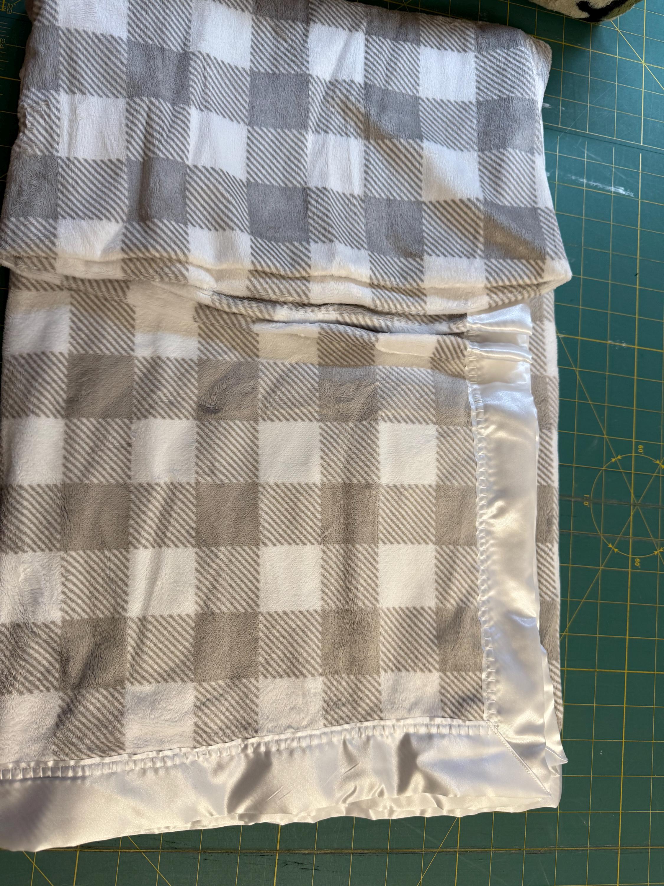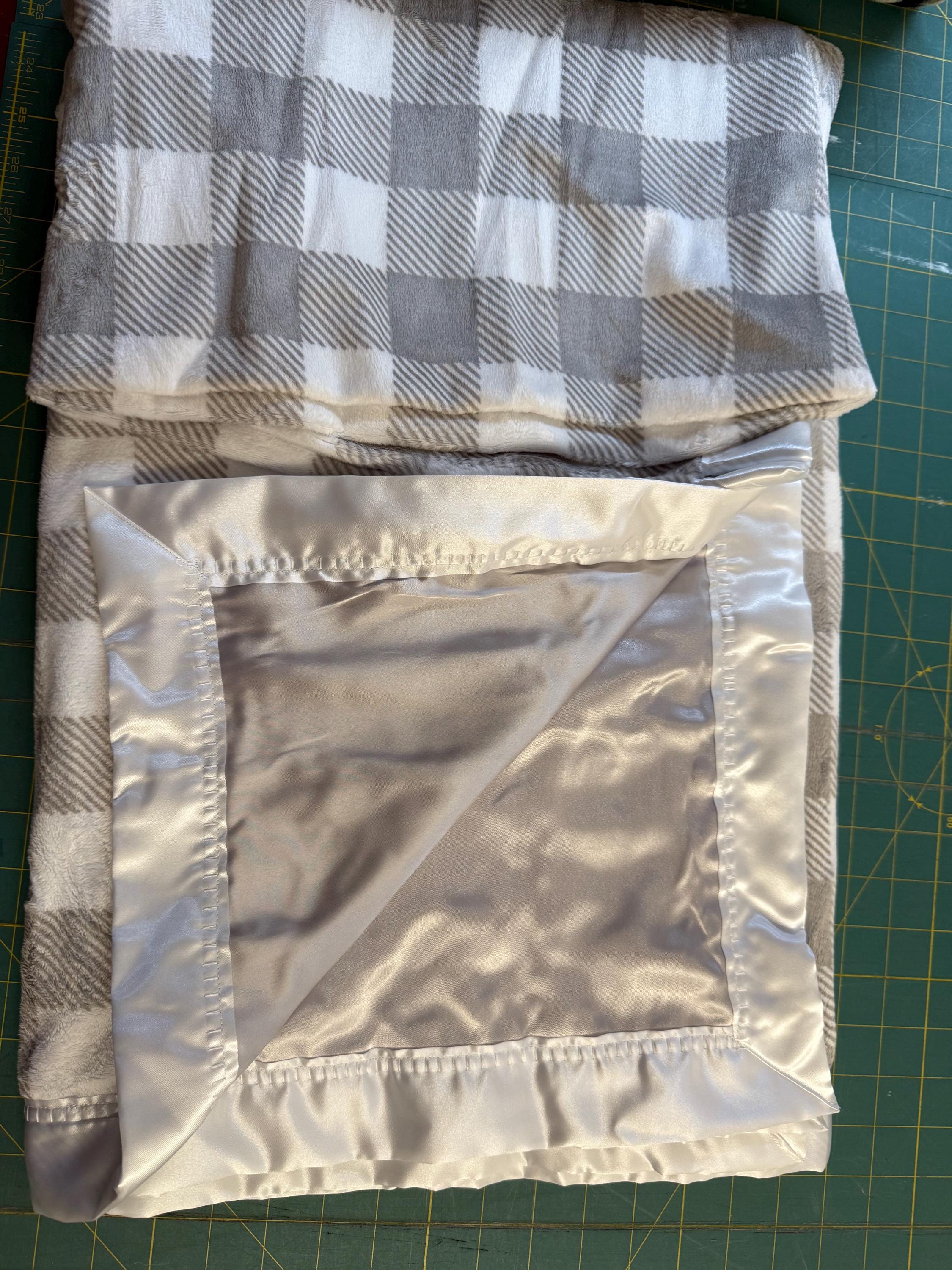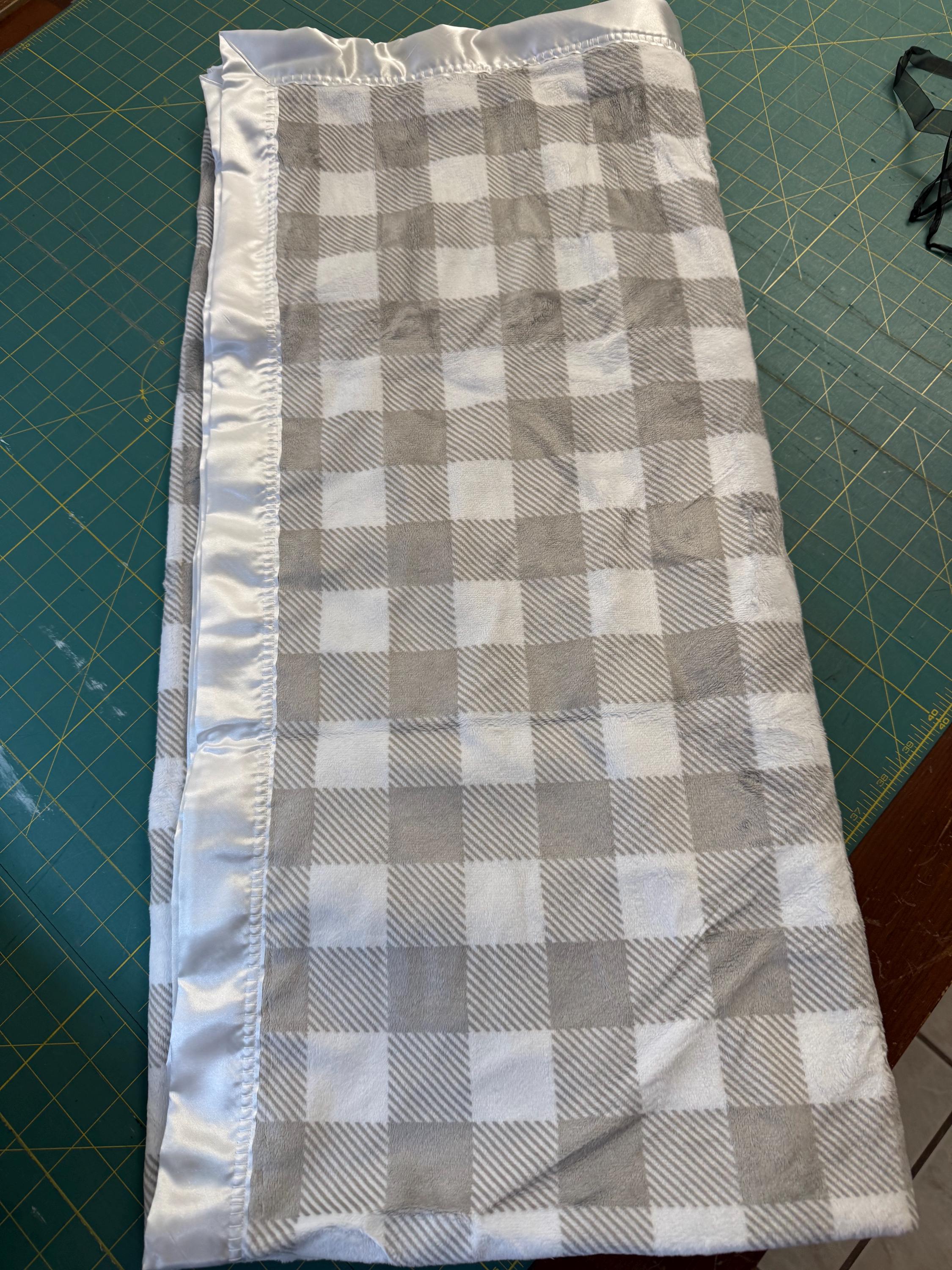 Super soft flat minky and satin neutral throw that will be especially appreciated. Free embroidery will personalize this blanket for a sweet gift.